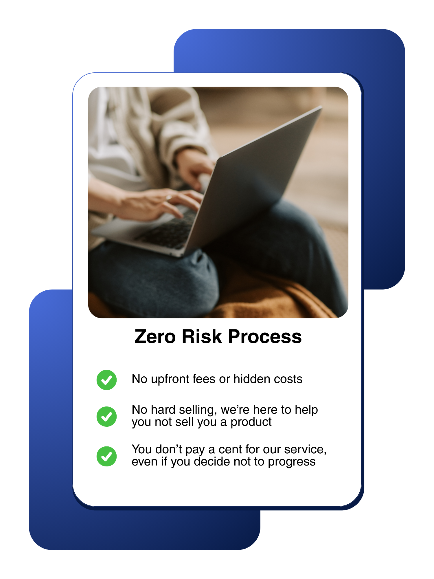 Our services are completely free for you as a buyer. We’re paid by the lenders, not by you. Our role is to help you secure the right loan and set up the right strategy from the very beginning.